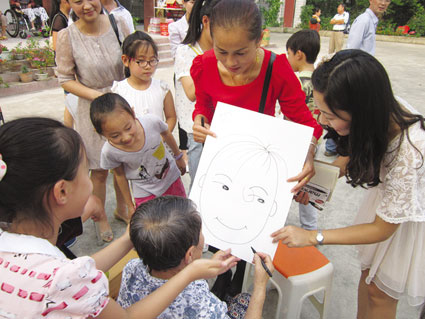 当日下午,淮南亲子公益群志愿者与淮南建发集团的职工及家属,走进老人居住的房间,帮老人剪指甲,穿衣服,与老人聊天,向老人问好。之后,老人们在志愿者的搀扶下来到公寓大院,观看来自淮南亲子公益群的孩子们的表演,并参与互动游戏画鼻子、抛篮球等。