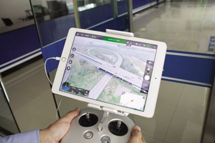 图一:高速交警操控“无人机” 图二:“无人机”传送所拍的画面 图三:“无人机”拍摄的画面