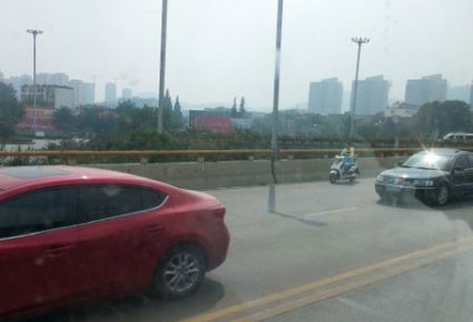 图:骑电瓶车从淮河大道立交桥上驶过