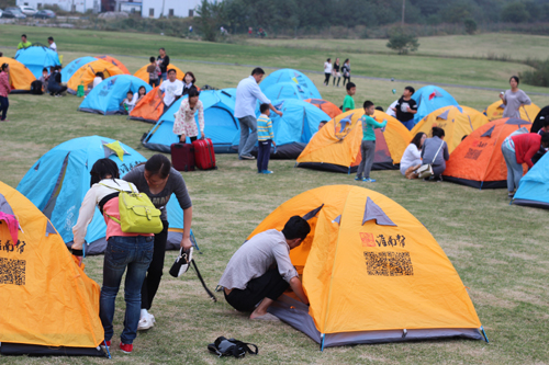 当天有100多顶帐篷露营,活动从下午3点开始,持续到第二天上午8点结束。在长达16个小时的时间里,主办方安排了拓展游戏、户外烧烤、篝火狂欢、现场音乐会、集体露营等活动,近千名参与的人员享受了一个别样的假期。