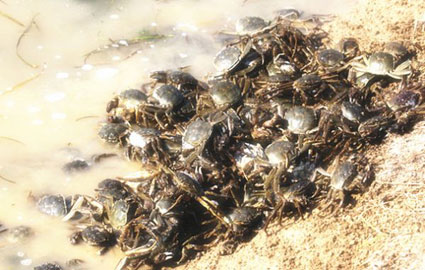 图:刚打捞出的螃蟹