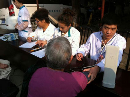 10月21日上午8时许,安徽理工大学化工学院学生会的20多名学生就已经在朝阳街道理工大社区里忙碌开了,拉横幅,摆桌椅,分发传单,忙得不亦乐乎,原来,这是安理大化工学院、朝阳街道理工大社区以及朝阳街道社区卫生服务中心一同举办的“爱在重阳”义诊活动。很快,社区里的老人们便纷纷闻讯前来,坐在义诊台前接受免费体检,朝阳街道社区卫生服务中心的工作人员各有分工,有的量体重,有的测血压,有的测血糖,还有工作人员专门为这些体检的老人们填写健康档案登记表,社区卫生服务中心负责人告诉记者,为了对社区老人的健康状况有系统的了解,他们会为每一个前来体检的老人进行健康档案登记,后期还会针对每个人的不同情况进行深入检查,比如肝肾功能以及B超等,都是免费的,确保老人能持续、准确地了解自己的健康状况。体检完的老人家们都非常高兴,连连称赞:“在重阳节这样特别的日子里,能为老人开展这样的活动的确温暖人心。”