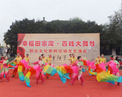 19日下午,在淮化集团灯光球场上,专场文艺演出拉开大幕,器乐合奏、舞蹈、大合唱、男女对唱、黄梅戏等多种多样的表演形式纷纷亮相。优美的舞姿、悠扬的歌声赢得了现场观众阵阵掌声,也为社区老人送去最美好的祝福。