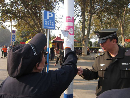 在人民北路公园东门段人行道上,一些商贩占道摆摊,城管执法队员和城管志愿者进行了劝离。在道路两侧店面,商户存在占道经营现象,城管执法队员和城管志愿者、城市文明劝导员一一上门劝导,商户现场整改。对地面上、电线杆、垃圾箱等上面粘贴的各种小广告,城管执法队员和城管志愿者、城市文明劝导员拿着小铲刀进行铲除。