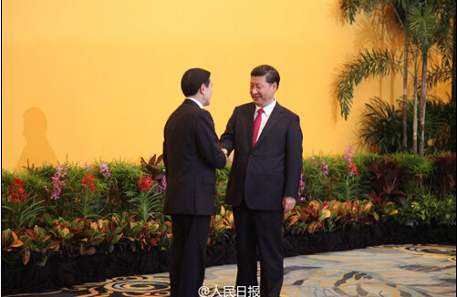 人民网北京11月7日电(万能) 今天下午,两岸领导人习近平、马英九在新加坡香格里拉饭店会面,在数百名中外媒体记者的瞩目下,在响成一片的快门声中,两岸领导人的手紧紧握在一起超过一分钟。众望所归、举世瞩目的“习马会”被网友“刷屏“,成为最热的话题。