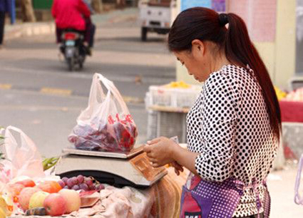 上午10时左右,戚凤在计师傅的帮助下摆好摊位,开始了一天的水果生意。摊位不大,但地段还算不错。小区门口人流量大,附近还有一所高校,对戚凤来说是块风水宝地!每每有面熟的人经过,戚凤总是热情地和他们打招呼,拉拉家常。“做生意就是做个人缘”,戚凤虽然文化不高但心里透亮。