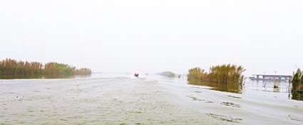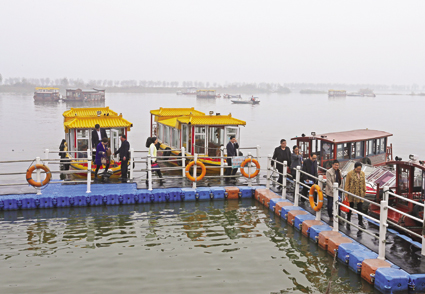 11月14日,游客在焦岗湖景区游览观光。初冬,素有华东白洋淀之称的焦岗湖秋色正浓,湖面上芦苇、残荷、飞鸟等一道道靓丽的风景,别有一番韵味,吸引摄影爱好者前来赏景、采风,众多游客观光游览。
