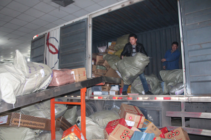 图为:快递员工加班处理涌进我市快件。