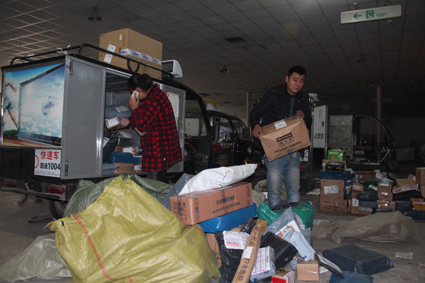图:楚伟夫妇一边分拣包裹一边忙着接听客户的电话。