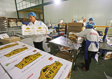 11月16日,淮南白蓝集团生产车间内,工人正在加工生产系列产品。近年来,白蓝集团经过不断创新改造升级,实现从小企业变身现代化大企业的转变,成为集生产、加工、储存、营销与技术研究为一体的综合现代农业企业。通过“研发+生产+出口”,各类产品远销美国、新西兰、阿联酋、韩国、日本、香港,年创汇600余万美元。