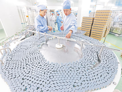 11月19日,国瑞药业冻干制剂包装车间,工人操作机器包装药品。近年来,国瑞药业不断提高研发和自主创新能力,丰富产品结构,完善营销网络,运用现代化制药设备和先进加工技术,进一步提高产品在国内市场的占有率,今年前三季度,国瑞药业产值和销售分别达到3.58亿元和2.56亿元,产销同比增长5.34%和10.80%。