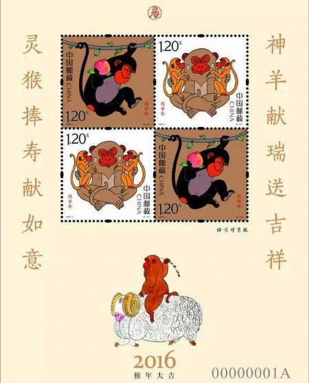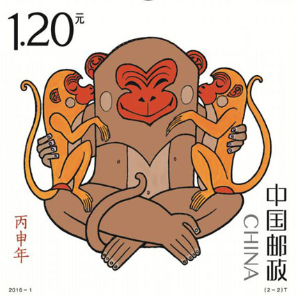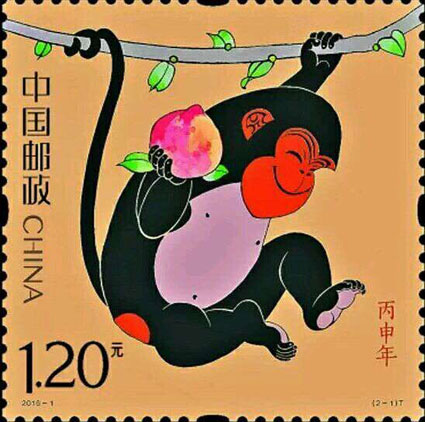图: 《丙申年》猴票(图片由中国邮政集团公司淮南市分公司提供)