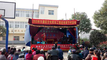 为满足人们日益增长的精神文化需求,近日,由大通区文广体局主办、寿县红五月文化艺术团承办的大通区文化民生工程送戏进万村活动在王庄村民文化广场举办。活动中,好戏连台,你方唱罢我登场,打板拉胡加演唱。舞台上,推剧演员们的表演朴素、活泼,唱腔圆润、细腻;舞台下,观众们看的津津有味,掌声不断。群众纷纷表示,好久没有听到那么原汁原味的推剧了,真是意犹未尽。
