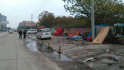 11月23日,田家庵区城管行政执法局组织执法人员20余名,冒雨对该路段私搭乱建进行依法拆除。本次行动,共拆除简易钢架棚22处,约1500平方米。同时,要求沿街门店要严格按照有关市容要求,规范经营行为,严禁私搭乱建、占道经营,并及时收集各类餐饮垃圾,清理地面油污、规范机动车停放等。