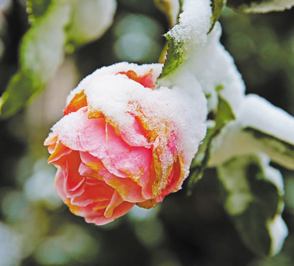 11月24日晚,初冬的能源城喜降今冬首场瑞雪,第二天一早,大雪给大地铺上了一层雪白的“毛衣”。在安理大南校园里,一朵朵雪花落在树、草、花丛上形成一团团、一朵朵美丽的雪团,洁白如玉煞是好看。