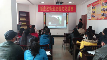 图:新庄孜街道开办法制文化大讲堂,为辖区各家单位及社区工作人员普及法律知识。