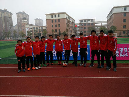 图为:青训基地的小队员们在绿茵场上合影。