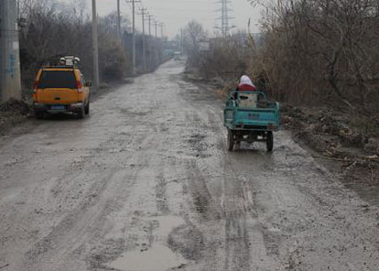 接电后,记者于12月13日上午驾车来到南山路,记者沿南山路行驶至骑山公墓门前时发现,南山路从骑山公墓门前向南路面,坑洼泥泞不堪。记者一路向南行驶,发现原本的水泥路面已经破碎不堪,路面上被人铺设了厚厚的一层碎石子填补路面的坑洼,虽然我市多日没有下雨,但是这条路上却是泥泞不堪,记者一路行驶到垃圾填埋场附近,路面的泥泞才算消失,但是直至马厂中心学校附近,道路破损更加严重,车辆行驶过后车后扬起浓浓的烟尘,记者粗略地估算一下,大约有七公里的道路破损十分严重。