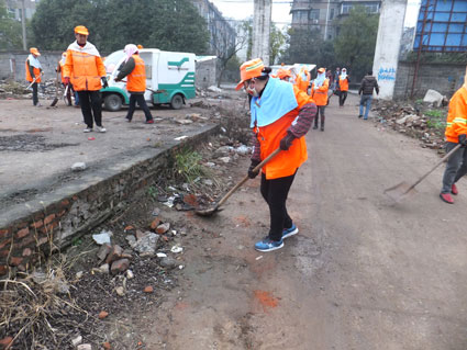 图:八公山区城管行政执法局、区环卫处动用人力机械集中整治校园周边环境。