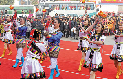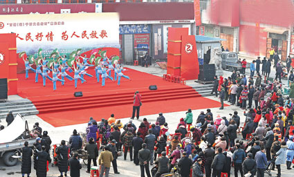 12月30日,毛集实验区科技广场,村民们正在欣赏精彩的文艺表演。当日,淮南市文化馆启动“百馆千村文化结对惠民文艺巡演”活动。该活动由安徽省文化馆联盟、淮南市文广新局主办,来自全市文化馆联盟的文艺工作者以及毛集实验区的艺术爱好者轮番登台献艺,为父老乡亲们献上一场精彩的文化大餐。