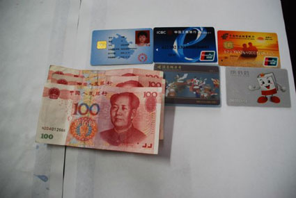 图:628路公交驾驶员李兵捡到的钱包内部分物品