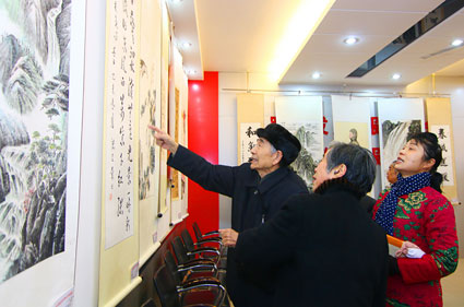 图二:1月15日上午,洞山街道新村社区举办“廉政文化进社区”主题书画展。淮河早报、淮南网记者在现场看到,新村社区活动室墙上挂满了参展作品。据社区工作人员介绍,为贯彻《中国共产党廉洁自律准则》,弘扬党的优良传统和作风,新村社区以书画活动为载体,宣传“党员廉洁自律准则”。本次书画展共收到40多幅作品。(记者 焦孝诚)