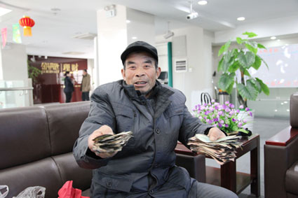 图二:程师傅拿着兑换的钱币