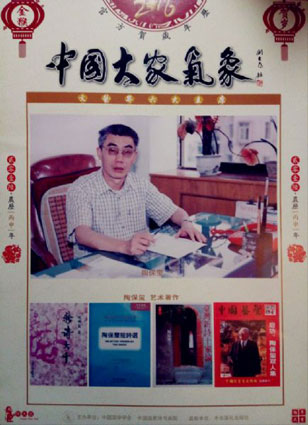 新年到了,许多家庭都更新了挂历。而由中国国学学会、中国国家诗书画院主办,中华国礼出版社监制面向全国发行的“中国大家气象”挂历却不同寻常。挂历中展示了当代中国文艺界6位名人:靳尚谊、沈鹏、陶保玺、刘文西、文怀沙、铁凝。尤为惹人注目的是,陶保玺的肖像及著述封面照,还被置于这一年历封页。不仅如此,由刘天白主编的中国最具权威的艺术文献图书“中国诗书画档案”(四卷本),陶保玺也名列其中,并被排在第四卷的首位。