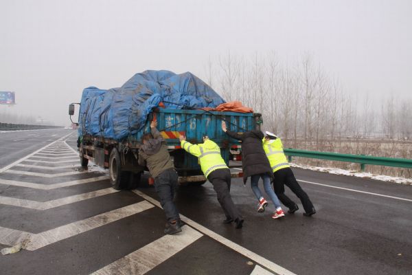 交警帮助驾驶员推车 通讯员 江浩 摄