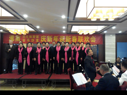 就这样,加入赵本刚的“演唱团队”的人越来越多,不久又有了吹笛子的、弹琴的等,大伙儿就开始有了组建乐团的想法。后来,“演唱团队”的成员发展到几十人,演奏、演唱、伴舞人员都有了,基本上具备了乐团的雏形。大家经常集中到老龙眼水库、龙湖公园、市体育文化中心广场等地排练,还给“演唱团队”起了名字叫“淮南民生体育馆音乐沙龙”。而且,随着知名度的提高,他们还经常被邀请到一些社区、企业做义务演出。
