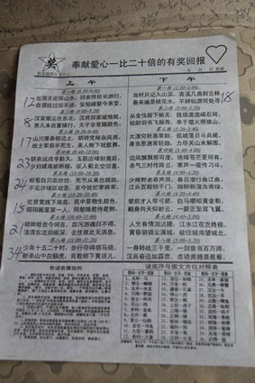 图:淮河早报、淮南网记者在“猜谜”赌博现场暗访带回的猜谜赔率单