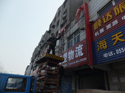 由于近日的大风天气,开发区园区内出现多处大型户外广告破损的情况,既有碍观瞻,又存在一定安全隐患。执法人员按照工作部署,首先对整治对象进行了地毯式梳理,登记造册,分类制定整治方案。对于可以联系到产权单位的,积极督促其自行整改。对于无主破损广告,高度可及范围内的一律人工拆除,过高的则利用升降机进行高空作业。