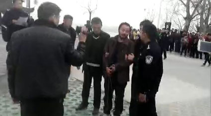 图:警方押解犯罪嫌疑人指认案发现场(图片由寿县公安局刑侦大队提供)