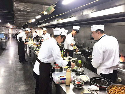 图一:一酒店正在练兵,厨师们潜心研究菜品。