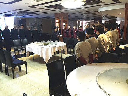 图二:一酒店正在培训,提高服务员的业务技能。
