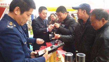 3月15日上午,由市工商局高新技术产业开发区(山南新区)分局、市烟草专卖局在山南新区三和镇绿谷购物广场联合开展纪念“3·15”国际消费者权益日活动。假烟、假酒、假冒品牌运动鞋等系列假货展示与鉴别吸引了山南新区三和镇的消费者驻足观看、仔细倾听。