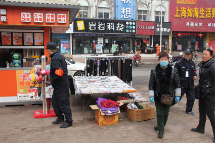 在走访的1个多小时当中,淮河早报、淮南网记者在整条商业街没有看到一名身穿城管执法制服的工作人员,只有一些身穿保安制服、带着“市容管理员”红袖标的人员在街内巡逻。居民们告诉记者,这些巡逻的“市容管理员”是某社会类似于物业的工作人员,自从商业街改造好后,他们就很少看见城管执法人员的身影,都是这些“市容管理员”在街内巡逻,管理街内商铺以及摊位。“城管行政执法人员为管理市容市貌而采取一些执法手段,我们能理解,可这些没有行政执法资质的社会物业人员也能没收我们的摊位和商品吗?他们有执法权吗?”一位曾在商业街内摆摊的小摊贩给淮河早报、淮南网打来电话质疑此事。