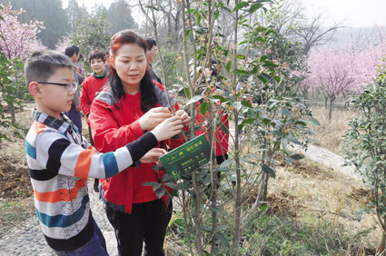 图二:为亲手栽种的树苗戴上“身份证”