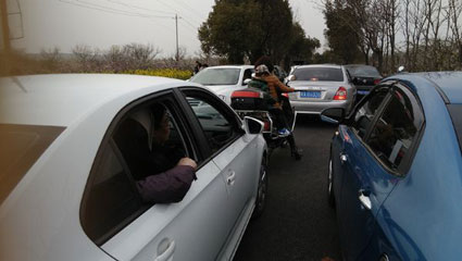在有些路段淮河早报、淮南网记者还看到,一些私家车车主为图自己方便,根本不管是不是转弯口或附近有没有其他车辆,干脆将车随意一停,就带着家人、朋友到旁边的桃园赏景、拍照,导致这些路段两侧都停有车辆,只能容一车通行。一旦两车相会,这些路段就会出现“肠梗塞”现象。一时间,堵塞的车队排成了长龙,喇叭声、吵闹声交织在一起,破坏了原本赏花的好心情。