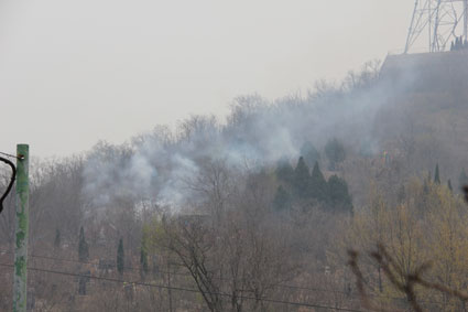 图五:焚烧冥币燃放爆竹导致漫山烟雾