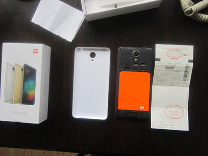 3月30日上午,淮河早报、淮南网记者见到了陈先生。陈先生和妻子拿着一个手机盒子,一脸无奈。淮河早报、淮南网记者看到,手机盒子外观显示是“红米Note3”,打开盒子,里面是一个金色手机,还有一张发票。发票上显示,收款单位是“小米科技有限责任公司”,项目一栏是“红米Note3”,金额“1099.00”,还有“小米科技有限责任公司发票专用章”。