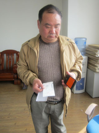 图:陈先生展示在网上购买到的问题手机