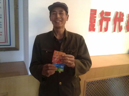 图:拿到“爱心卡”的廖大爷笑逐颜开