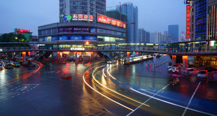 (雨夜街景 拍于朝阳路过街天桥 田刚)