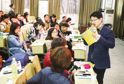 4月12日上午,在田区十六小阶梯教室里座无虚席,淮南市2016年小学英语观摩研讨会在这里顺利进行。观摩研讨会一共三个部分,教师公开课、全市英语教师交流、省内英语教学专家讲座。来自全市的200多位英语教师在这里会聚一堂,探讨新时代下的英语教学趋势和日常教学经验。