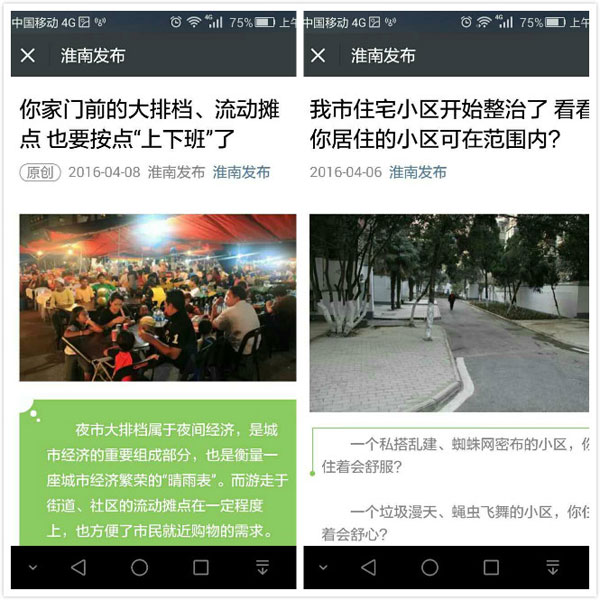 今年3月,“淮南发布”开通了留言功能,进一步增强了同广大市民的互动性,《备受淮南人瞩目的城市轨道交通项目有了新进展》、《淮南市公共自行车布点方案公示啦,快来看看你家门口可有》、《我市住宅小区开始整治了看看你居住的小区可在范围内?》、你家门前的大排档、流动摊点也要按点“上下班”了》等涉及民生的信息,受到广大网民的高度关注和评价,相关图文后评论留言踊跃,广大市民积极为淮南经济社会发展建言献策,为市委、市政府科学、民主决策提供了民意支撑。除了涉及民生的资讯外,自开通以来,“淮南发布”加大对热点、重点、亮点信息的播报,诸如交通出行信息、供水供电提醒、中小学学区划分、招考招聘等与群众生活密切相关的服务信息,都能通过“淮南发布”第一时间推送。