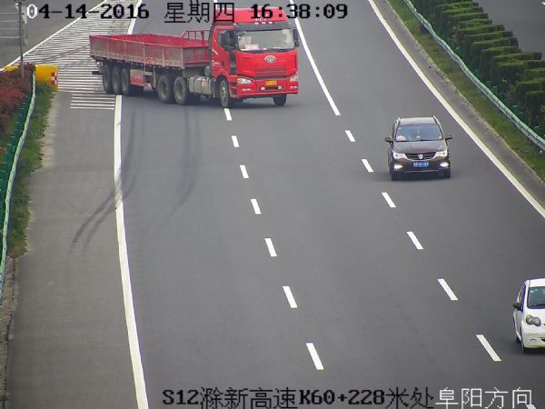 图二:大货车倒向分流岛后驶离