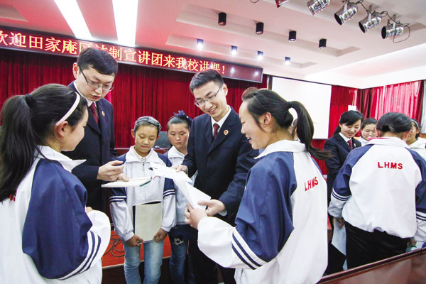 “法制进校园”再升级。4月18日下午,田家庵区关工委,区教育局,区检察院多家单位工作人员组成的法制宣讲团,走进龙湖中学民生校区,为孩子们带来一堂别开生面的普法课。专业人士解读了《未成年人保护法》、《预防未成年人犯罪法》等法律法规,并结合“合肥少女毁容案”谈青少年犯罪预防。图为课后,检察官和学生们进行了互动,交流如何用法律武器保护自己。