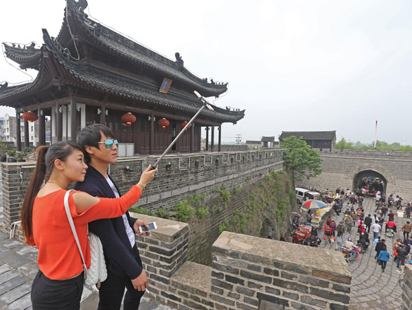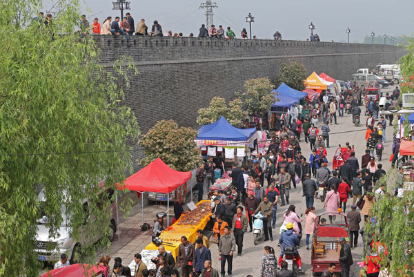 4月21日,农历三月十五日,是寿县古城一年一度的庙会文化节,是集道教文化、民俗文化、商贸文化、民间工艺文化、饮食文化和现代文化为一体的皖中地区著名的传统庙会。当日,天气晴朗,山上山下,人头攒动。庙台上下,热闹非凡。县城内外主街道、主干道两侧,商贾云集、货物齐全,来自四面八方的游客在四顶山敬香祈福,在古城购物游玩,感受浓郁的民俗文化。