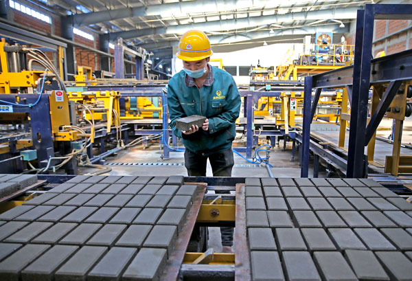 5月3日,工人正在淮南金科再生资源利用有限公司生产车间试生产。总投资2.1亿元人民币,年处理270万吨城市建筑垃圾的淮南金科再生资源利用有限公司建设项目是国家和地方支持的环保型再生资源利用项目和淮南市城市建筑垃圾收集处理项目,通过使用除尘和降噪设备,将城市建筑垃圾经过处理后变成新型建筑材料,进行循环利用。 目前,该项目已进行投入试车阶段,将于本月上旬正式投产。